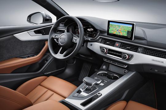 전체 이름은 이렇다. 더 뉴 아우디 A5 45 TFSI 콰트로. 이름만으로 차량을 어느 정도 파악하게 한다. 모델명 다음 숫자 45는 아우디만의 성능 등급이다. 다이내믹 배지로 불린다. 숫자는 중력 가속도 1g를 100이라고 할 때 가속 성능을 나타낸다. 35 배지를 단 모델이 쾌적하게, 55 배지를 단 모델이 짜릿하게 달렸다. 45 배지라면 그 중간. 아쉬울 것 없는, 그러면서 제법 짜릿한 면모도 보여주는 출력을 예상하게 한다. 정지상태에서 100km까지 스포트백은 6초, 쿠페는 5.9초, 카브리올레는 6.3초 만에 도달한다. 그 다음, TFSI는 직분사 터보차저 가솔린 엔진을 뜻한다. 마지막 콰트로는 아우디의 자랑 사륜구동을 나타낸다. 그런 점에서 더 뉴 아우디 A5 45 TFSI 콰트로는 성능 면에서 알차게 구성했다는 걸 알 수 있다.