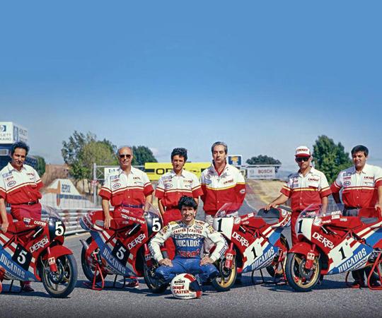 1922년부터 자전거와 모페드를 만들어왔으며 1946년 투자를 받으며 엔진 달린 것까지 영역을 넓혔다. 첫 모터사이클인 48cc의 SRS가 성공적으로 런칭했고 1960년대 말부터 2000년대까지 다수의 월드 그랑프리에서 우승을 차지하기도 했다. 특히 50cc를 비롯해서 강력한 125cc 엔진으로 양산형 모터사이클 시장에서도 많은 판매고를 기록하기도 했다. 유럽에서는 면허 체계상 125cc 미만이 많이 팔릴 수밖에 없는 곳이었고 청소년이나 20대 초반의 학생들이 쉽게 탈 수 있는, 그러나 스타일이 좋은 데르비의 모터사이클 인기가 좋았다.