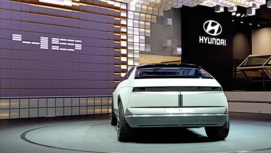 하지만 개막 이전부터 우리나라 자동차 애호가들에게 특별히 관심을 끌던 모델이 하나 있었습니다. 당장 살 수 있는 차도 아닌 컨셉트카일 뿐인데도 그랬습니다. 바로 순수 전기차 컨셉트카인 ‘45’였습니다.