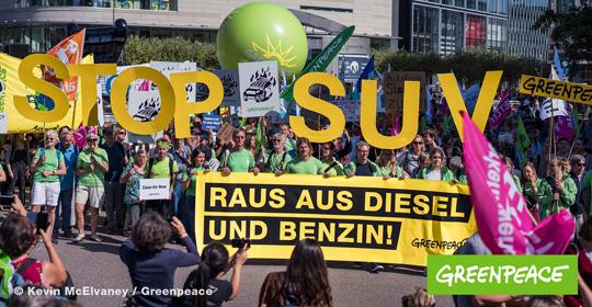 그린피스와 도이체움벨트힐페와 같은 환경단체, 그리고 독일 자전거 클럽 등이 주도한 이 날 시위에 (주최 측 추산) 2만 5천 명이 참여했다고 독일 언론들이 전했다. 그런데 이것이 전부가 아니었다. 이튿날에는 수백 명의 시위대가 박람회장 입구를 막아 관람객 입장을 저지하려 했으며, 전시된 자동차 위에 일부 환경단체 회원들이 올라가 ‘기후살인자’라는 플래카드를 들고 있다 붙들리기도 했다.