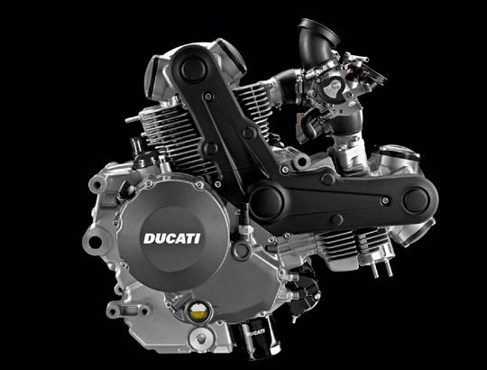 L트윈 엔진에 데스모드로믹 밸브 개폐 시스템. 이 두 가지는 오랜 시간 두카티의 아이덴티티였다. 그러나 강화되는 환경 규제 속에선 아무리 배기량을 높여도 출력의 한계가 왔다. 그래서 두카티 선택한 것은 바로 V형 4기통 엔진이다. 출력이 더 낮았던 두카티의 L트윈 엔진의 슈퍼 스포츠 바이크가 4기통 엔진을 레이스에서 이길 수 있었던 이유는 좁은 차체에서 오는 운동성능 덕분이었다. 그 운동성을 포기 할 수 없어서 2기통을 고집해 왔지만 이제는 그 한계에 다다랐다고 본 것이다.