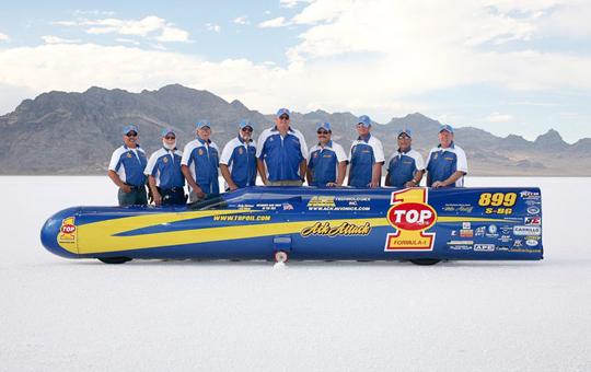 볼리비아의 유우니 소금 사막에서 세워진 이 기록은 매년 경신돼 시속 640km를 넘겨버렸다. 이곳에서는 매년 월드 랜드스피드 챌린지가 열리는데 많은 사람들이 지상에서 가장 빠른 탈 것을 위해 다양한 도전을 하고 있다.