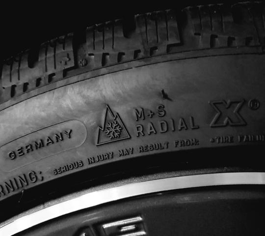 우리나라처럼 사계절 타이어를 많이 사용하는 경우 가장 먼저 확인할 것은 겨울용 타이어처럼 측면에 머드+스노우(M+S) 표시가 있는가 하는 점이다. 독일에서는 산 모양 속에 눈 결정체 표시(흔히 알파인 심볼이라고 하는)까지 있는 것을 겨울용 타이어로 인정하고 있다.