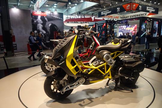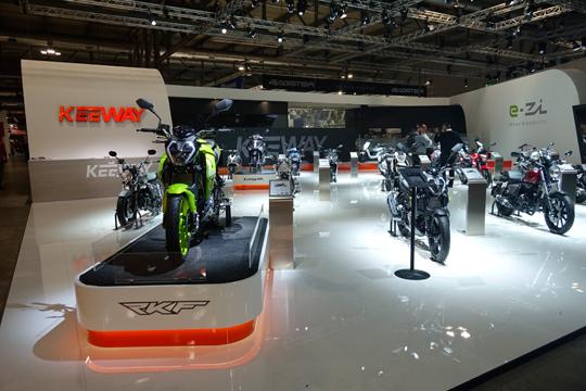 이번 쇼에는 중국관이 따로 마련되어 있었다. 수많은 중국 업체들이 다양한 내용을 가지고 나왔다. 어디선가 본 듯한 디자인과 내용도 많았지만 몇 차례 이곳에서 만난 적 있는 업체들은 놀라울 만큼 빠른 발전 속도를 보이기도 했다. 단순 외형 카피에서 이제는 성능까지도 빠르게 따라오고 있으며 과거 단순 자본 제공과 저렴한 생산 베이스의 역할에서 벗어나고 있는 것이다. 독자적인 디자인을 가진 고배기량 모터사이클에 대한 생산과 전기 에너지로의 적극적인 개척 등 빠르게 발전하고 또 거기에 대응해가고 있다.