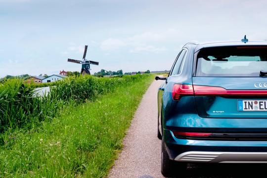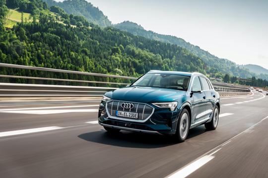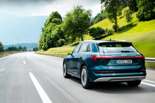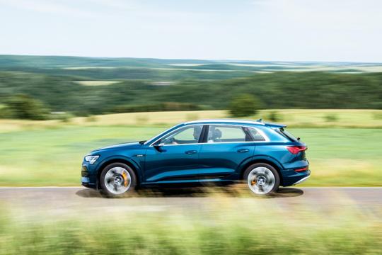 e-트론은 길이 4901mm, 휠베이스 2928mm로 국내 기준으로는 대형급에 속한다. 차체가 크고 전기로만 움직이는 순수 전기차인데도 성능을 보면 스포츠 SUV라 할 만하다. 전기모터 두 개가 내는 최고출력은 355마력이고, 부스트 모드를 사용하면 402마력까지 올라간다. 최대토크는 기본 57.2kg・m이고 부스트 모드에서 67.8kg・m까지 치솟는다. 최고속도는 시속 200km, 정지상태에서 시속 100km 도달 시간은 6.6초이고 부스트 모드에서는 5.7초로 단축된다. e-트론의 정식 명칭은 e-트론 55 콰트로다. 아우디를 상징하는 '콰트로'라는 단어에서 알 수 있듯이 e-트론도 네바퀴굴림을 집어넣었다. 앞뒤에 달린 전기모터로 전자식 상시 네바퀴굴림을 완성해, SUV 본연의 특성을 강화했다.