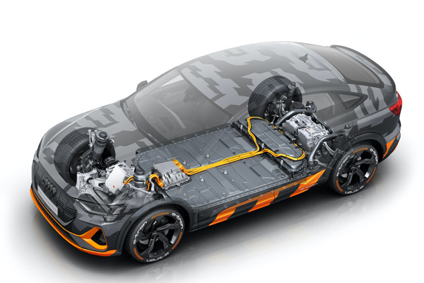 ‘아우디 e-트론 55 콰트로’에 탑재된 95kWh 용량의 리튬이온 배터리는 12개의 배터리 셀과 36개의 배터리 셀 모듈로 구성되어 있다. 가정과 공공, 또는 아우디 네트워크 내에 설치된 충전소에서 완속(AC) 및 급속 (DC) 충전이 가능하며, 급속 충전 시 최대 150kW의 출력으로 약 30분이면 0 ~ 80%까지 충전할 수 있다.