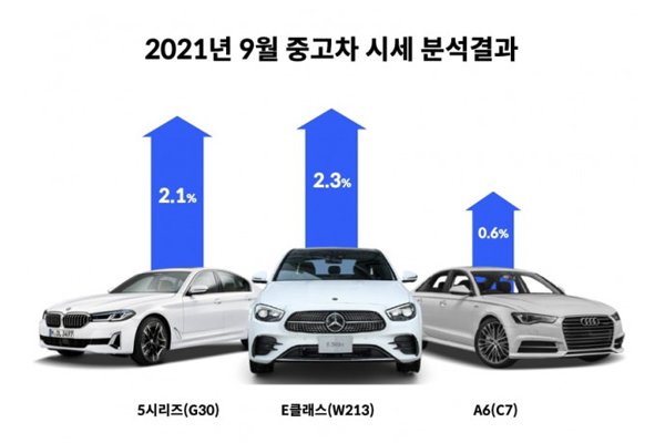 벤츠 E클래스(W213)는 2.3% 상승했고, BMW 5시리즈(G30)가 2.1%, 아우디 A6(C7)도 0.6% 상승했다.