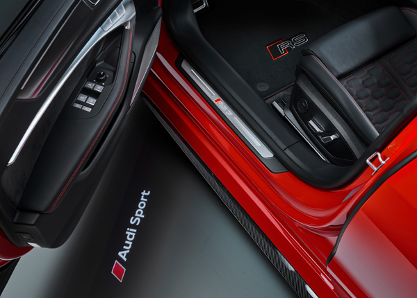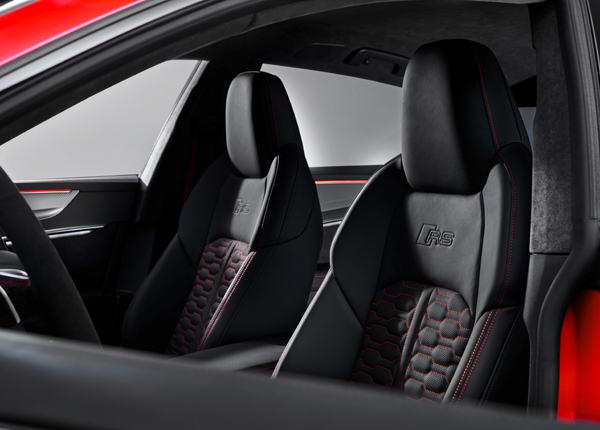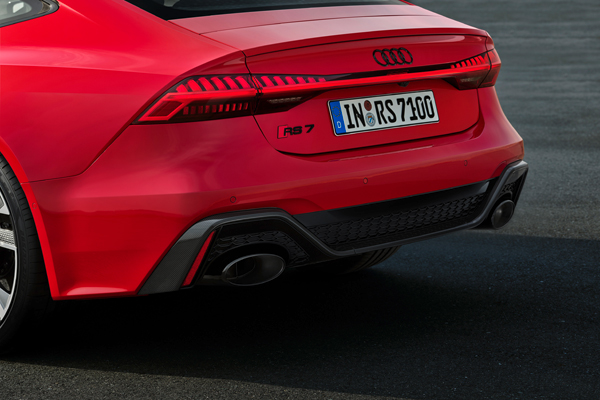 RS 모델의 특징인 카본과 블랙 포인트는 어김없이 RS 7의 외관을 관통한다. 검은색 아우디 로고가 검은색 라디에이터 그릴 위로 양감을 드러낸다. RS 배지의 레터링 또한 검은색이다. 보통 고성능 모델이라면 과시하는 방식으로 외관을 치장한다. 아우디의 RS는 반대 방식으로 강조한다. 드러내지 않기에 오히려 디자인 각 요소가 더욱 강렬해지는 효과를 얻는다. 시선을 흩트리지 않기에 외관이 더욱 선명해진달까. 덕분에 RS 7의 인상은 보다 날카로워졌다.