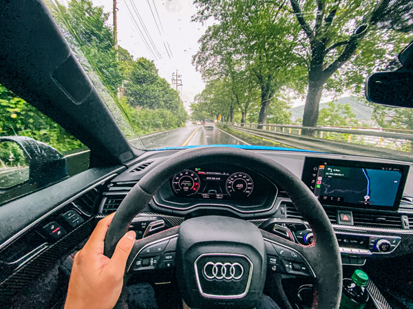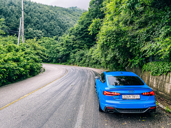 RS 6 아반트는 2,215kg이다. 반면 RS 5 스포트백은 1,810kg이다. 가벼운 무게가 출력 차이를 상쇄한다. 강변만 달리는 코스였다면 더 풍성한 RS 6 아반트나 RS 7을 선택했을지 모른다. 하지만 굽잇길까지 달리면 또 달라진다. 굽잇길에선 민첩할수록 더 즐겁다. 드라이버 실력에 따라 달라지지만, 내겐 콤팩트한 차체가 주는 이점이 더 다가왔다. 그렇기에 RS 5 스포트백.