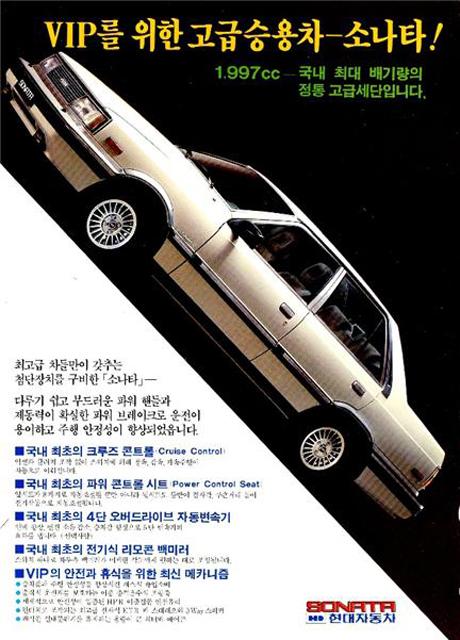 [변성용의 사라진 차 이야기] 쏘나타가 처음 나온 것은 1985년의 일. 이때만 해도 쏘나타의 국내 명칭은 영문명(Sonata)의 국내 표기법인 소나타였다. ‘소(牛)나 타는 차’라는 경쟁사의 악의적인 루머로 인해 은근슬쩍 쏘나타로 이름도 바꾸어 보았지만, 현대차의 새로운 야심작은 염가형 중형차의 느낌이 강했던 스텔라의 그늘에 가렸고 중형차 왕국으로 통하던 대우 로얄 시리즈 앞에서 맥을 추지 못했다. 자칫 스러질 뻔 했던 차가 일어설 수 있었던 것은 1988년 후속 모델인 Y2 쏘나타부터였다.