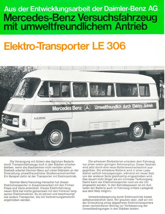 같은 해 8월, 서독 뮌헨이 올림픽을 열자 독일 자동차 제조사들은 앞 다퉈 지원차량으로 전기차를 내세웠다. 세계에 기술력 자랑할 좋은 기회였다. 메르세데스-벤츠는 LE 306을 선보여 주목을 끌었다. 이에 그치지 않고 총 58대의 LE 306을 양산해 실제 주행 성능 및 유지에 관한 대규모 실증 시험도 진행했다.