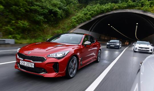 강희수(이하 강) : 스팅어의 특징을 기능적으로 이야기하면 “빠르다”라는 걸 거다. ‘제로백’. 별로 탐탁지 않은 조어이지만 차의 순간 가속력을 평가하는 용어로 흔히 쓰이는 말이다. 정지상태에서 출발해 시속 100km까지 도달하는 데 걸리는 시간을 뜻하는데, 순간 발진 능력이 어느 정도인지를 가늠하는 잣대로 통용 되고 있다. 스팅어가 100km/h에 도달하는 시간은 4.9초다. 최고 속도는 270km/h. 우리가 ‘슈퍼카’라고 부르는 람보르기니나 페라리, 맥라렌, 그리고 프리미엄 브랜드 중에서도 고성능 튜닝 브랜드들이 3초대 ‘100km/h 발진 성능’을 보이고 있다.