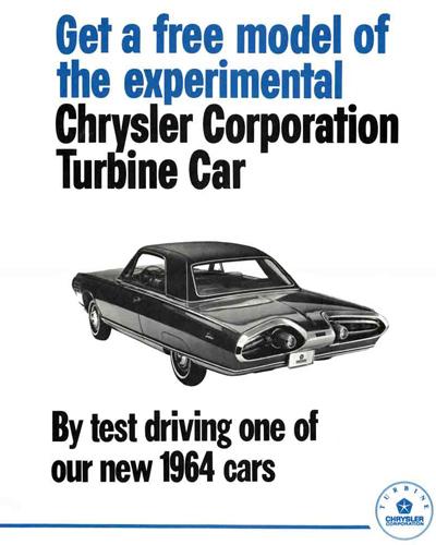 크라이슬러는 다양한 모델에 터빈을 얹고, 콘셉트카 만들어 연신 쇼에 내보내며 ‘엔진의 미래’를 과시했다. 당시 미국 콘셉트카의 분위기는 최첨단, 미래를 줄곧 제시했다. 크라이슬러 또한 가스터빈 엔진 기술로 자신들의 기술적 우위성을 드러내길 희망했다.