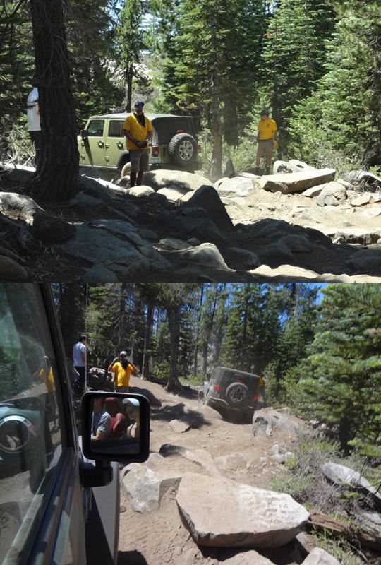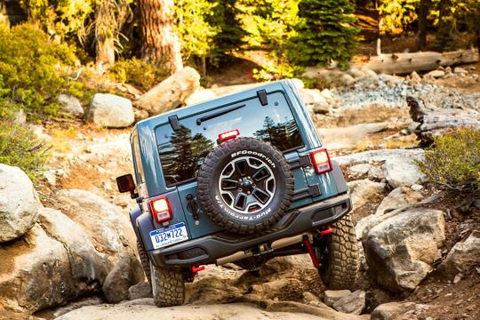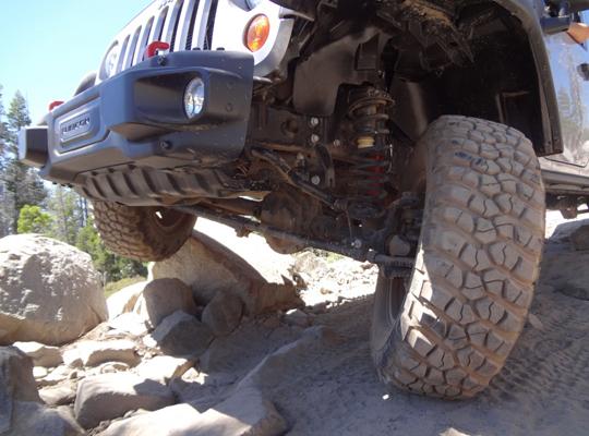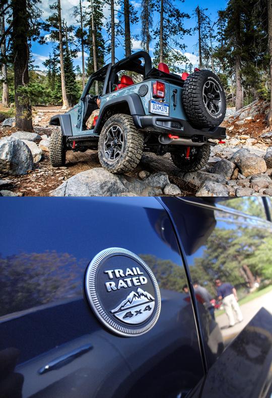 급경사에 좁은 길을 따라 바위가 사방으로 뻗어있다. 게다가 중간마다 밀가루같이 부드러운 모래에 타이어가 빠지고 미끄러진다. 일반 자동차라면 주행할 생각도 못 낼 환경. 하지만 랭글러는 이곳이 놀이터다. 전자제어 잠금 앞/뒤 다나 44 차축과 록 트랙 트랜스퍼 케이스로 바퀴의 구동력을 고정할 수 있다. 쉽게 말해 4로(4-LOW) 기어에서 앞뒤 50%, 혹은 각 바퀴로 25%씩 동력이 고정된다. 따라서 바위를 오를 때 앞바퀴가 구동력을 잃거나 앞바퀴와 뒷바퀴 한쪽씩 공중에 뜨는 상황에서도 충분한 힘을 발휘해 코스를 탈출할 수 있다.