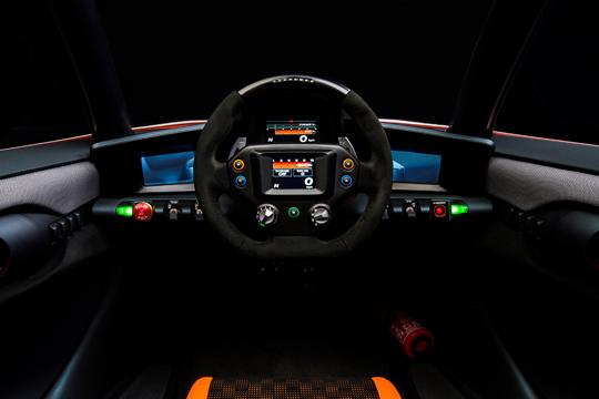 실내는 경주용 자동차 분위기가 물씬하다. 운전자가 가운데 앉고 양쪽에 승객이 탄다. 서킷을 달린다면 운전자가 가운데 앉는 쪽이 유리할테다. 스티어링 휠에는 디스플레이 달아 모든 정보를 띄운다. 공기저항 줄이기 위해 사이드 미러를 떼어내고 카메라와 스크린 달아 뒷부분을 비추도록 만들었다.