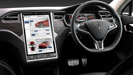 터치스크린의 경우 조작이 직관적이고 동시에 정보를 효과적으로 전달한다. 그래서 주로 운전자가 손을 뻗어서 닿을 거리에 장치를 두고 사용하도록 디자인된다. 센터페시아 중심에 위치한 경우 차의 각종 기능과 멀티미디어를 제어하는 데 유용하다. 이 부분에서는 테슬라 모델 시리즈가 대표적이다. 모델 S의 경우 중앙에 달린 터치스크린의 크기가 17인치에 달한다. 스크린의 크기만 큰 것이 아니다. 차의 거의 모든 기능을 여기서 제어한다. 오디오, 내비게이션, 인터넷 검색뿐만이 아니라 공조장치, 헤드라이트, 심지어 선루프 열림도 스크린을 눌러 작동시킨다.