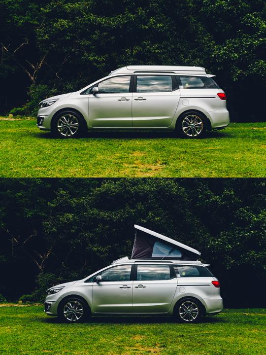 승합차를 주목했다. 캠핑카로 만들든, 캠핑카에 준하게 바꾸든 공간이 큰 차가 각광받을 수밖에 없으니까. 그 대열에 카니발이 빠질 수 없다. 카니발은 미니밴의 절대 강자다. 어깨 견줄 다른 모델이 없다. 압도적이다. 이것저것 다 따지면 결국 카니발에 안착한다. 외관 당당하고, 실내 넉넉하니까. 가족과 함께 레저를 즐기고픈 사람이 그만큼 많이 선택했다. 그 말은 더 그럴듯한 공간을 바랄 가능성도 높다는 뜻이다. 카니발이 변신할 조건이 성립된다.