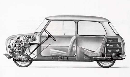 소형차 영역에서 오늘날까지 아름다운 디자인으로 전통을 이어오는 두 모델이 있습니다. 바로 미니와 비틀입니다. 두 모델은 작은 차체와 네 명의 탑승객을 수용해야 한다는 동일한 전제를 갖고 출발했지만 서로 다른 방식으로 시작했습니다. 미니는 캐빈 활용성을 극대화하기 위해 가로배치 엔진에 FF(Front Engine Front-wheel Drive) 방식을 조합했고, 네 바퀴를 차체 코너로 최대한 밀어냈습니다. 비틀의 타입 1 모델의 길이가 4미터를 살짝 넘긴데 반해 원조 미니는 전장이 3미터 남짓이었기 때문에 같은 소형차여도 덩치 차이가 제법 났습니다.