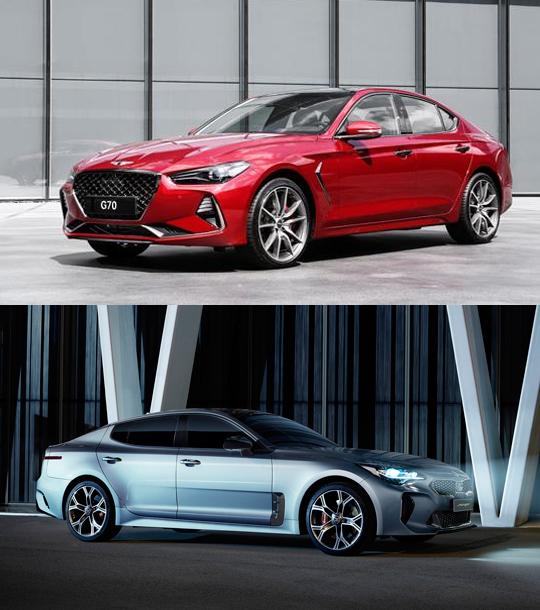 스팅어의 경쟁자는 형제 브랜드인 제네시스에서 나왔다. 역시 퍼포먼스 세단을 표방하는 G70이 강력한 경쟁자로 수상을 다퉜다. 5,700점 만점 중 스팅어가 4,615점을, G70이 4,588점을 얻었다. 근소한 차이는 디자인과 퍼포먼스, 혁신성에서 갈렸다. G70이 더 고급스러웠지만 협회 회원들은 혁신성에서 앞선 스팅어의 손을 들어주었다.