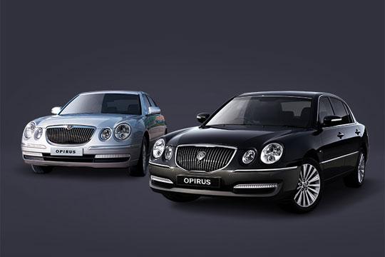 그 뒤를 이은 것은 오피러스였다. 플랫폼이 앞바퀴굴림으로 바뀌기는 했지만 플래그십의 위치는 그대로였다. 특히 대형 세단으로는 유일했던 포멀 루프(Formal Roof)는 급하게 떨어지는 C 필러와 수직으로 서 있는 뒷유리 등으로 매우 독특한 보디라인을 만들었다. 포멀이라는 이름에서 알 수 있듯이 이는 ‘공식적’인, 혹은 ‘의례를 갖춘’ 것을 의미한다. 과거 마차 시절부터 공식적 정장을 입은 남자들은 높은 모자를 써야 했기에 넉넉한 머리 공간이 필요했고 자연스럽게 보디의 높이도 올라갔다. 마차들의 평평한 지붕과 수직으로 떨어지는 뒷모습이 만들어진 이유이기도 하다.