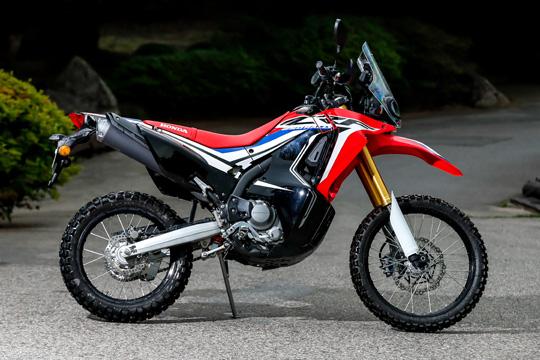 스포츠 바이크인 CBR250R의 단기통 엔진을 사용해 만들어진 오프로드 모델 CRF250L에 연료탱크 용량을 늘리고 페어링을 추가한 모델이 CRF250랠리이다. 유명한 다카르랠리에 참가하고 있는 혼다의 랠리 컴피티션 모델인 CRF450랠리의 외형을 그대로 본떠서 만들어졌다. 21인치 프론트 휠과 높은 지상고로 주파력이 좋으며 한번 가득 주유하면 서울에서 부산까지도 무급유로 갈수 있는 놀라운 연비(제원표상)를 가지고 있다. 장거리 주행도 충분한 편안한 포지션과 주행풍을 잘 막아주는 페어링도 큰 도움이 될 것이다. 혼다라는 브랜드가 주는 안심감과 검증된 내구성 또한 중요한 포인트. 무엇보다도 실제 랠리 경기를 달리는 바이크와 비슷한 외형은 만족감이 높다. 랠리라는 것 자체가 장거리 여행과 비박에서 파생된 것이니까, 현실적으로 즐기는 랠리가 바로 모토캠핑이다. 가격 789만원.