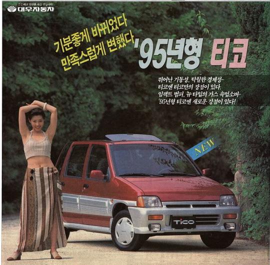 한국의 본격적인 자동차화는 다소 늦었다. 88 서울올림픽 개막에 앞서 교통 인프라를 대대적으로 정비, 확충하고 자가용(自家用) 차 보급에 심혈을 기울인 게 시작이었다. 국제 대회를 개최하면서 국제적 망신(?)을 당하면 안 된다는 이유였다는데, 어쨌든 한국 사회는 이 무렵부터 급속한 자동차화에 접어들게 됐다. 대우 티코는 한국 사회의 자동차화에 방점을 찍는 차였다. 1980년대부터 준비해 1991년 출시한 티코는 명실상부한 국민차였고 한국 최초의 경차였다.