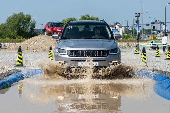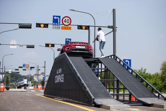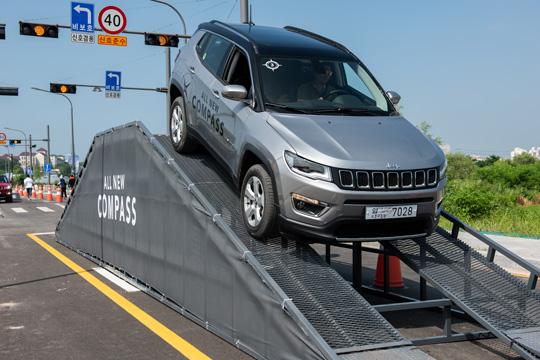 지프는 실제 주행코스도 준비했다. 당연히 컴패스의 주행성능을 직접 경험해보라는 뜻. 고속화도로와 콘크리트 포장도로를 누비는 일상적 주행이 하나, 그리고 야외에 제작한 특설링에서 지프 고유의 오프로드 성능을 맛보는 게임이 또 다른 하나다.