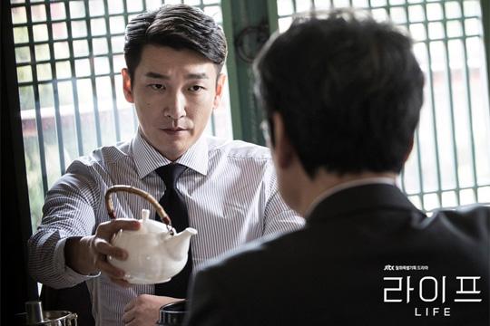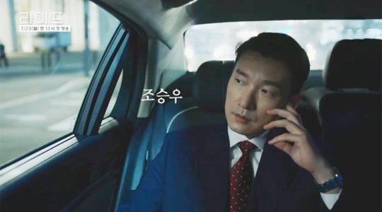 정덕현(이하 정) : <라이프>는 말한 대로 촘촘한 대본은 기본이고, 연출도 예사롭지 않다. <라이프>에서 처음 의사와 사장으로 대립각을 세우는 예진우(이동욱) 응급의료센터 전문의와 구승효(조승우) 총괄사장이 마주치는 장면이 그렇다. 마치 아버지처럼 따랐던 원장의 갑작스런 죽음을 마주하고 망연자실한 채 예진우는 도로를 건너고, 마침 그 때 구승효가 탄 차가 끽 소리를 내며 급정거를 한다. 예진우가 놀라서 슬쩍 피하며 차 안에 누가 타고 있는가를 살피고, 그 차에서 잠시 후 구승효가 다부진 모습으로 내린다. 제네시스 EQ900이 처음 등장하는 장면인데, 향후 구승효가 나아가려는 길을 만만찮게 예진우가 가로막을 거라는 걸 그 한 장면이 암시한다. 굉장히 상징적이라 인상적인 장면이었다. 물론 그 때 현대자동차가 차량 지원을 했다는 사실도 알았지만.