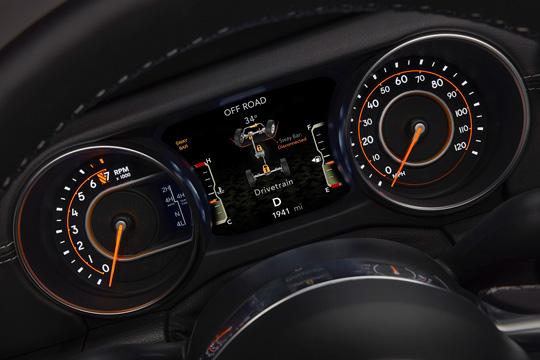 올 뉴 랭글러는 무른 노면이나 비포장 급경사에서도 좀처럼 바퀴가 헛돌지 않았다. 그만큼 접지력이 좋다는 의미. 전자제어식 차동 제한장치는 거의 작동하는 경우를 보지 못했다. 디지털 클리노미터가 경사도 25°를 가리키는 가파른 비포장 코스에 도전할 때도 기어비 4:1의 초저속 4L 로(low) 기어를 선택하고 센터와 리어 디퍼렌셜을 잠근 게 호들갑이 아니었나 싶을 정도로 천연덕스럽게 올라가는 모습이었다.