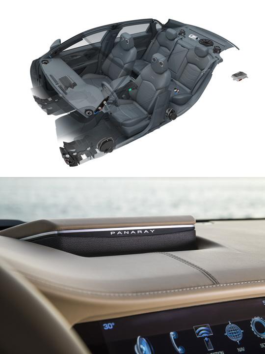 파나레이 오디오 시스템은 분산형 베이스 기술이 특징이다. 보통 자동차용 우퍼는 커다란 크기의 스피커를 쓴다. 반면 파나레이에서는 크기가 작은 4개의 독립형 앰프가 달린다. 앞 좌석 아래에 달린 2개의 인클로져(Enclosure, 스피커 박스)에서 앰프 특유의 쿵쾅거리는 소리를 만든다. 그리고 각각의 앰프와 2.75인치 스피커 4개가 연동해 고유 진동을 상쇄한다. 뒷좌석에서는 양쪽 문에 달린 4개의 4인치 스피커와 선반 아래 달린 10인치 서브 우퍼가 각 채널의 베이스를 나눠서 표현한다. 이들은 CT6의 파워트레인에서 실내로 들이치는 소음을 상쇄하는 데도 큰 역할을 한다.