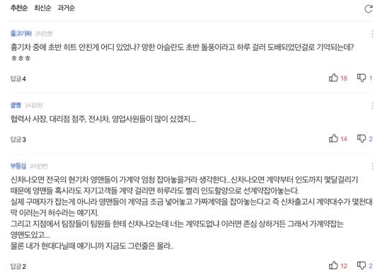 일단, 아슬란부터 짚고 넘어가겠습니다. 아무리 현대차가 출시 초기 언론 플레이를 잘한다고 해도, 댓글처럼 아슬란이 돌풍을 일으키고 매일 도배되지는 않았습니다. 오히려 현대차가 시장 분석을 잘못하고 내놓은 모델이라는 부정적 기사가 훨씬 더 많았죠. 사전계약도 18일 동안 2200대에 머무는 등 실패가 예견된 그런 차였습니다.