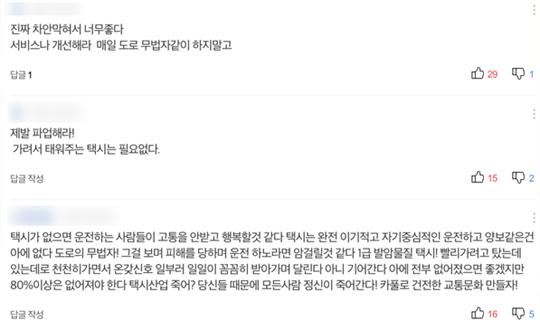 반대로 2013년에 비해 2018년 현재 택시 입장에서 불리해진 요소는 더욱 많습니다. 택시 산업에 일반 국민들이 느끼는 문제점은 2013년이나 2018년이나 전혀 다르지 않습니다. 출퇴근 시간에 택시 잡기는 여전히 어렵고 승차거부를 경험하는 사람들 역시 여전히 많습니다. 또한 여전히 운전자들은 도로 위에서 거칠게 운전하는 택시들을 곱지 않은 시선으로 보고 있으며 승객들 (특히 여성들)은 택시 기사의 불친절한 서비스에 상처를 입은 경험이 많습니다. 하지만 일반 국민들은 택시 업계, 그리고 정부가 5년 간 이런 상황을 개선하기 위해 어떤 노력을 해왔는지 전혀 체감하지 못하고 있습니다. 그 결과 일반 시민들의 택시 기사들에 대한 불만은 오히려 계속 누적되어 커지기만 해왔습니다. 택시 산업에 대한 일반 국민들의 반감은 택시 파업 관련 기사의 댓글만 봐도 쉽게 알 수 있습니다. 택시 산업은 현재 국민들이 택시에 대해 “반감”을 가지고 있다는 것을 분명하게 인식해야만 합니다.