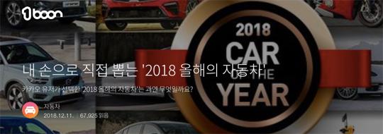 ‘내 손으로 직접 뽑는 2018 올해의 자동차’의 보다 자세한 결과는 ‘1boon(https://1boon.kakao.com/car/2018_bestcar)’에서 확인할 수 있다.