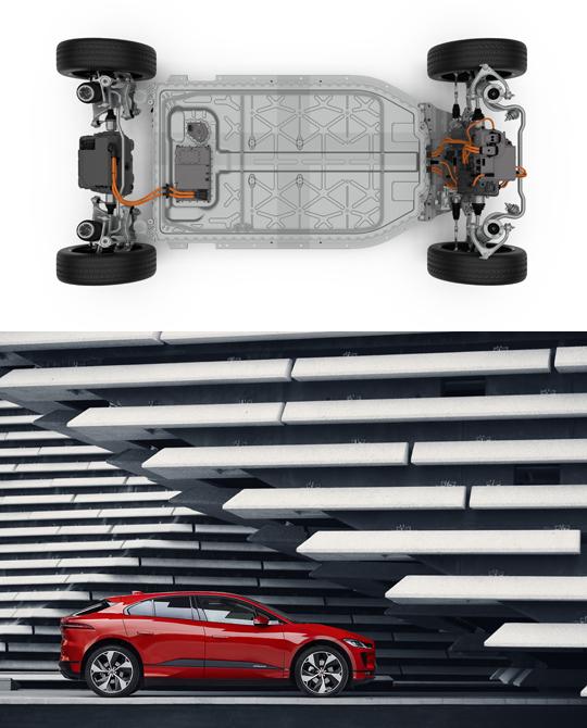 “전기 구동계 덕분에 자유롭고 다양한 디자인을 구현할 수 있었다.” 재규어 디자인 디렉터 이안 칼럼은 I-페이스가 백지에서 시작해 재규어의 정체성을 지켜낸 차라고 설명했다. 오프로드 성능을 강조하는 것도 비슷한 맥락이다. 실제로 전기차로 오프로드를 달리는 사람은 많지 않을 것이다. 하지만 I-페이스는 진흙, 젖은 풀밭, 얼음, 눈길, 비포장도로 등 주행 환경에서 최적의 접지력을 끌러내는 네바퀴굴림 시스템도 쓴다. 액티브 에어 서스펜션(일부 모델)을 사용해 차고도 조절할 수 있다. 에어 서스펜션은 승차감을 확보하는 데 도움을 준다. 시속 105km 이상 고속 주행에서 차체를 10mm 낮춰 안정감을 더하고 공기 저항도 줄인다.