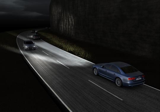 자동차 헤드램프에 일대 혁신을 이룬 LED 헤드램프는 2013년 중대한 전환점을 맞이한다. 아우디는 2013년 프랑크푸르트모터쇼에 A8 부분변경 모델을 내놓으면서 세계 최초로 매트릭스 LED 헤드램프도 함께 선보였다. 리플렉터 한 개에 LED 5개를 모은 매트릭스 빔 5개를 배치해 좌우 합쳐 50개 LED가 각기 제 역할을 해낸다. 주변의 빛이나 상황을 파악해 스스로 작동하는 방식인데, 윈드실드에 달린 카메라가 전방 상황을 파악해 마주 오는 차 또는 앞서가는 차나 보행자 등을 인식해 빛의 세기와 각도 범위 등을 조절한다.