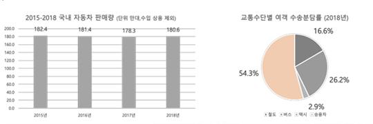 현재 존재하는 각종 통계를 살펴봐도 이는 쉽게 확인할 수 있습니다. 여전히 우리나라 수송분담률의 50% 이상은 승용차가 담당하고 있으며, 국내 자동차 판매량은 포화상태에 이른 것으로 보이기는 하지만 그렇다고 해서 줄어드는 기미가 보이는 것도 아닙니다.
