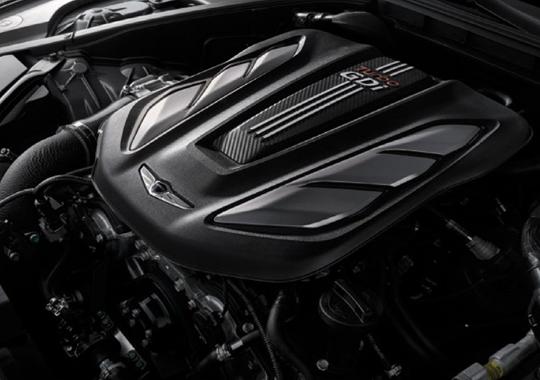이는 현재 G80 스포츠에 들어간 370마력의 람다2 트윈터보 엔진보다 출력이 10%가량 높아진 것입니다. 또, G90에 사용되는 타우 5.0 V8 GDi(425마력)와도 비슷합니다.