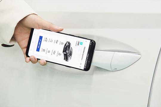 또한 자동차와 스마트폰과의 연동이 강화되고 있습니다. 최근에는 스마트폰 앱을 통해 자동차의 공조나 시동을 제어하는 단계를 넘어서 새로운 활용 방법들이 등장하고 있는데 이번 서울모터쇼에서 발견할 수 있는 대표적인 사례는 현대 쏘나타입니다. 현대차는 쏘나타에 NFC 디지털키를 적용해 스마트폰으로 차량 문을 열고, 시동을 걸 수 있는 기능을 선보였습니다. NFC 디지털키는 개인화가 가능해 디지털 키로 문을 여는 순간 차가 사용자를 인식하여, 시트 포지션, 사이드 미러 등 운전 환경이 자동으로 설정됩니다.