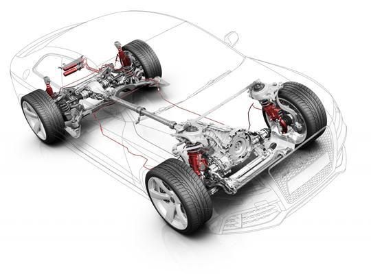 이 부문에서도 아우디는 앞서 나간 브랜드 가운데 하나다. 일반적으로는 쇼크 업소버의 댐핑 오일이 통과하는 밸브를 열거나 좁히는 방법으로 감쇄력을 조절하는 유압 조절식을 사용한다. 장점이 많은 이 방식에게도 결정적인 단점이 있었는데 그것은 내구성이다. 왜냐하면 오일이 통과하는 밸브의 면적을 조절한다는 것은 미세한 부품들이 커다란 압력 가운데에서 작동해야 한다는 뜻이기 때문이다. 또한 밸브를 조인 상태에서 부하가 높은 주행을 계속하면 부품과 유압액이 모두 과열되어 성능이나 수명에 악영향을 미칠 수 있었다.