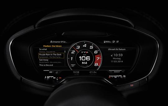 계기판 전체를 디스플레이로 채웠다. 12.3인치 크기에 1440×540픽셀 고해상도로 다양한 정보를 선명하게 표시한다. 아우디는 엔비디아와 파트너십을 맺고 최신 프로세서를 넣어 3D 이미지를 강화했다. 초당 60프레임으로 속도계와 태코미터 바늘의 움직임도 정확하게 표현한다. 화면에는 내비게이션, 카메라 뷰, 운전자 지원 기능, 전화, 라디오, 오디오 시스템 등 다양한 기능을 표시할 수 있다. 속도계와 태코미터는 상황에 따라 화면에 크게 자리 잡거나 작은 크기로 양옆 구석으로 이동하기도 한다.