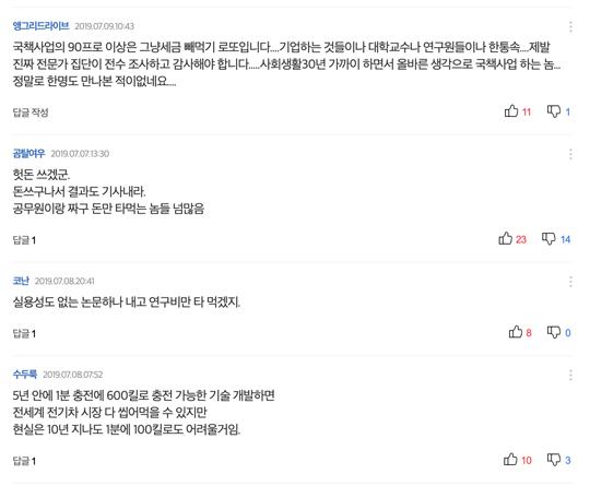 일단 정부의 돈이 헛되게 쓰인다는 비판이 있네요. ‘1600억 투자로 것도 7년 안에? 어째 허황된 꿈같은 소리로 들리지?’, ‘다 업체 정해져 있는 과제구먼. 그냥 나누어 먹기 미안해서 과제 이름도 정하고 대단해 보여’, ‘헛돈 쓰겠군. 돈 쓰고 나서 결과도 기사로 내라’…