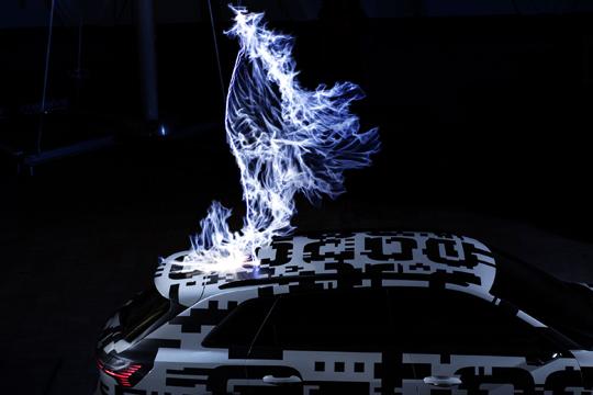 지난해 아우디에서는 차량에 전기를 쏴 충전을 시키는 섬락(Flachover) 시스템을 공개했습니다. 번개 같은 50만볼트의 전압을 자사의 전기차인 e-트론에 쏴 배터리를 충전한 것이죠. 참고로 50만볼트는 진짜 번개(낙뢰)의 1/2000 수준이고, 아우디는 최대 350만볼트의 섬락을 시연할 수 있다고 합니다.