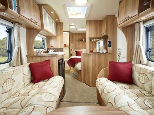 커다란 세 개의 전면창과 카라반의 끝부분 전체를 샤워실과 화장실로 꾸민 구조는 우리나라 소비자의 취향을 제대로 저격했습니다. 독일과 프랑스의 유럽 스타일 카라반 보다는 약간은 투박한 느낌이 강하고 세련된 맛은 조금 떨어지지만 나름 모던한 스타일을 유지하고 있습니다. 실상 영국 카라반의 이런 변화는 그리 오래되지 않았습니다. 불과 몇 해 전까지만 해도 투박한 원목에 앤티크 한 가구 디자인으로 뒤에 설명해 드릴 미국의 그것과 일맥상통하는 디자인을 가지고 있었습니다. 카라반 기준 연간 3~4만 대 수준의 시장규모를 가지고 있어 부품의 대량생산을 통한 소재 개발 보다는 목재를 이용한 소재를 많이 채용하고 있습니다.