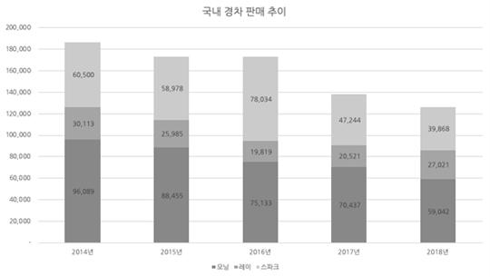 [김진석의 라스트 마일] 경차는 뛰어난 경제성을 바탕으로 오랫동안 사랑받아온 차급입니다. 하지만 요즘 들어 경차 판매가 예전 같지 않다는 얘기가 들립니다. 실제로 경차 판매는 해마다 줄어 2018년 경차 판매량은 2014년의 거의 ⅔ 수준으로 줄어들었습니다. 2015년에 스파크와 모닝의 피나는 할인 경쟁에 소비자들의 관심이 쏠렸던 것이 얼마 안 된 것 같은데 어느새 두 차종 모두 판매량이 예전 같지 않습니다.